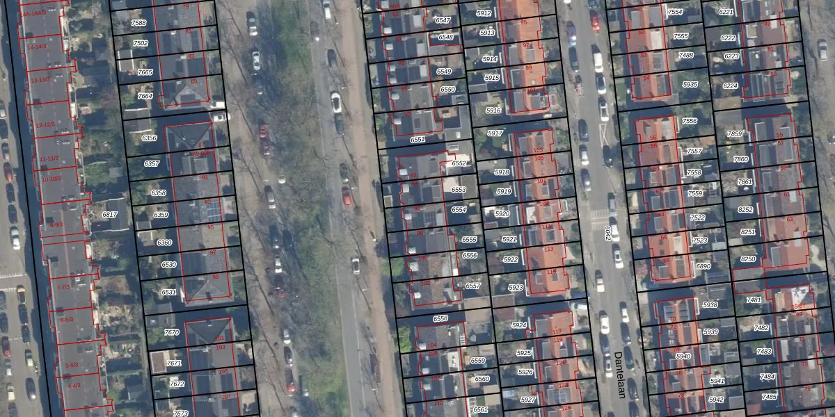 Gebruik de zoekbalk of klik op een perceel voor informatie over de adressen binnen dit perceel.