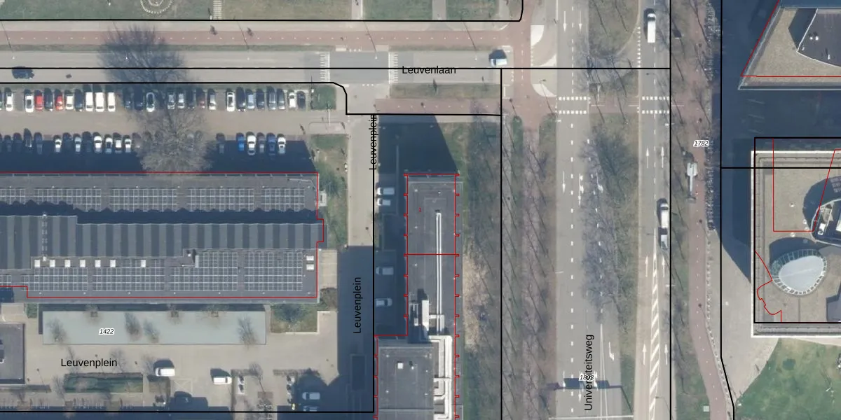 Leuvenplein 1 is gelegen op kadastraal perceel UTT00N1442. Deze kadastrale aanduiding is uniek en wordt gebruikt door het Kadaster om eigendomsrechten en andere zakelijke rechten vast te leggen. Het perceel maakt onderdeel uit van de kadastrale gemeente Utrecht.
