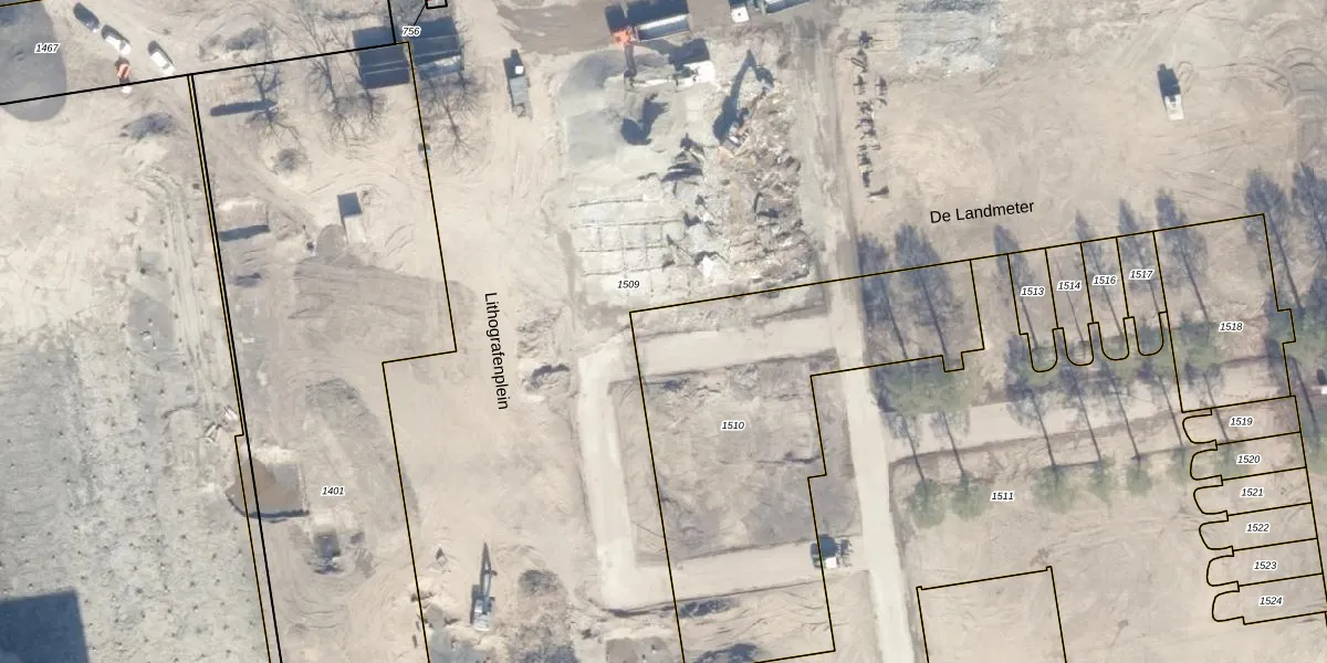 Het perceel waarop Lithografenplein 100 staat heeft een oppervlakte van 1713 m². Dit is een zeer groot perceel. De perceeloppervlakte wordt geregistreerd door het Kadaster. Gedetailleerde informatie over de maten van dit perceel kunt u vinden in het rapport Kadastrale kaart met maatvoering van Lithografenplein 100.