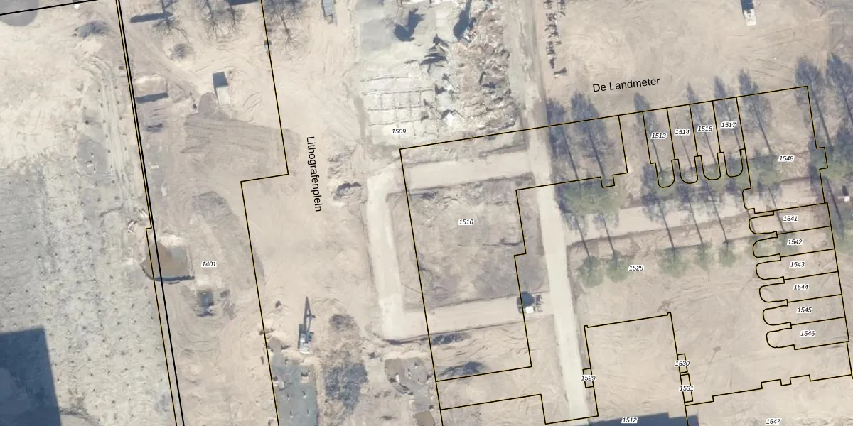 Het perceel waarop Lithografenplein 131 staat heeft een oppervlakte van 1713 m². Dit is een zeer groot perceel. De perceeloppervlakte wordt geregistreerd door het Kadaster. Gedetailleerde informatie over de maten van dit perceel kunt u vinden in het rapport Kadastrale kaart met maatvoering van Lithografenplein 131.
