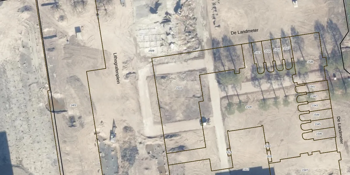 Het perceel waarop Lithografenplein 213 staat heeft een oppervlakte van 1713 m². Dit is een zeer groot perceel. De perceeloppervlakte wordt geregistreerd door het Kadaster. Gedetailleerde informatie over de maten van dit perceel kunt u vinden in het rapport Kadastrale kaart met maatvoering van Lithografenplein 213.