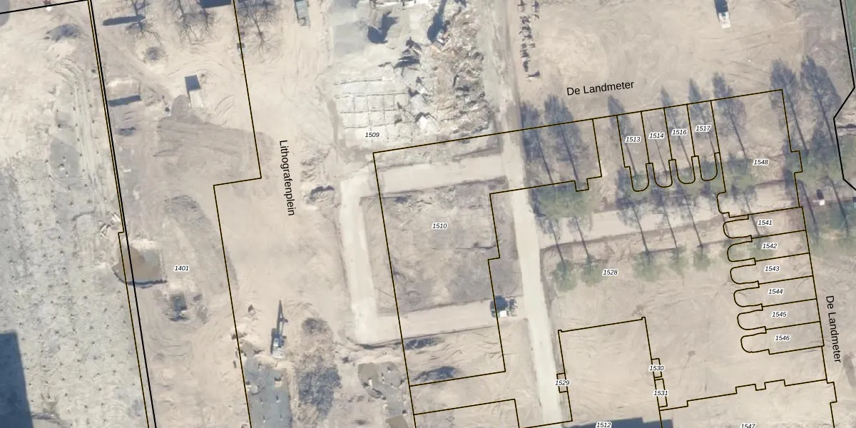 Het perceel waarop Lithografenplein 215 staat heeft een oppervlakte van 1713 m². Dit is een zeer groot perceel. De perceeloppervlakte wordt geregistreerd door het Kadaster. Gedetailleerde informatie over de maten van dit perceel kunt u vinden in het rapport Kadastrale kaart met maatvoering van Lithografenplein 215.