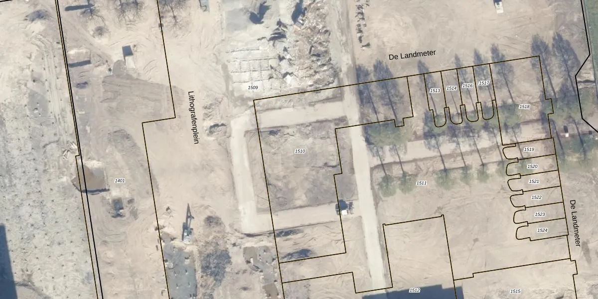 Het perceel waarop Lithografenplein 227 staat heeft een oppervlakte van 1713 m². Dit is een zeer groot perceel. De perceeloppervlakte wordt geregistreerd door het Kadaster. Gedetailleerde informatie over de maten van dit perceel kunt u vinden in het rapport Kadastrale kaart met maatvoering van Lithografenplein 227.