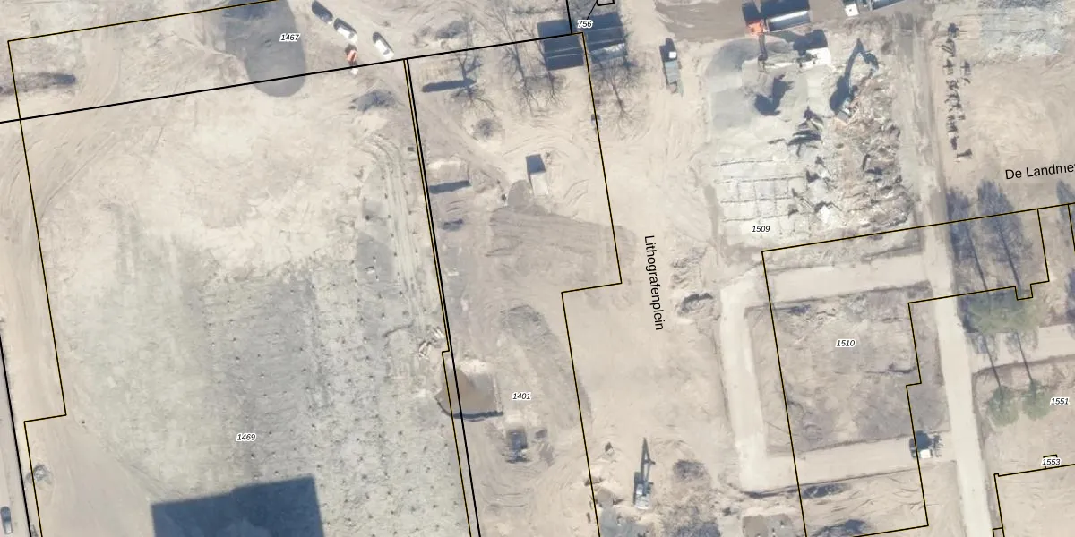 Het perceel waarop Lithografenplein 525 staat heeft een oppervlakte van 3792 m². Dit is een zeer groot perceel. De perceeloppervlakte wordt geregistreerd door het Kadaster. Gedetailleerde informatie over de maten van dit perceel kunt u vinden in het rapport Kadastrale kaart met maatvoering van Lithografenplein 525.