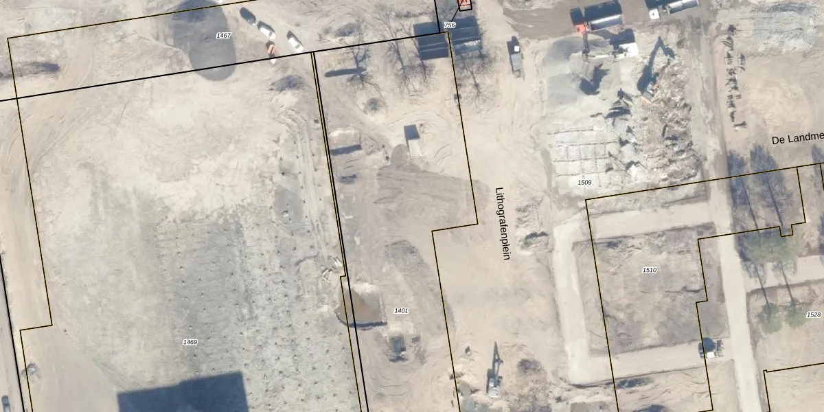 Het perceel waarop Lithografenplein 543 staat heeft een oppervlakte van 3792 m². Dit is een zeer groot perceel. De perceeloppervlakte wordt geregistreerd door het Kadaster. Gedetailleerde informatie over de maten van dit perceel kunt u vinden in het rapport Kadastrale kaart met maatvoering van Lithografenplein 543.