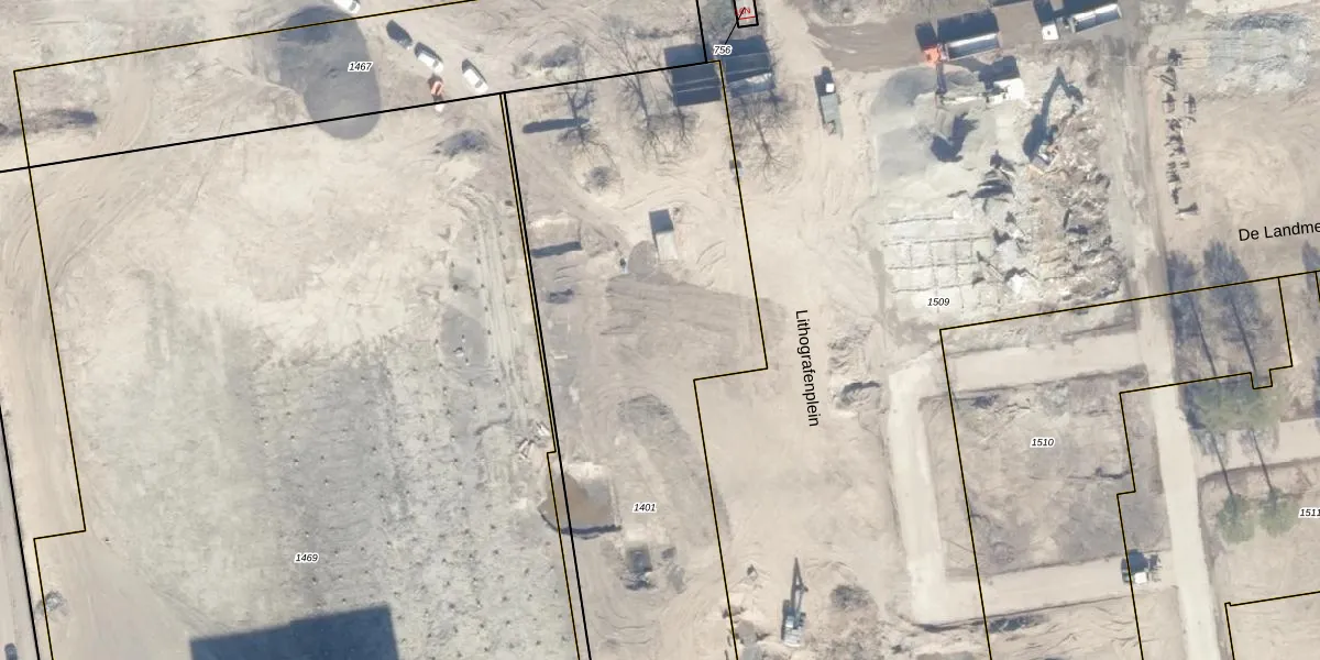 Het perceel waarop Lithografenplein 567 staat heeft een oppervlakte van 3792 m². Dit is een zeer groot perceel. De perceeloppervlakte wordt geregistreerd door het Kadaster. Gedetailleerde informatie over de maten van dit perceel kunt u vinden in het rapport Kadastrale kaart met maatvoering van Lithografenplein 567.