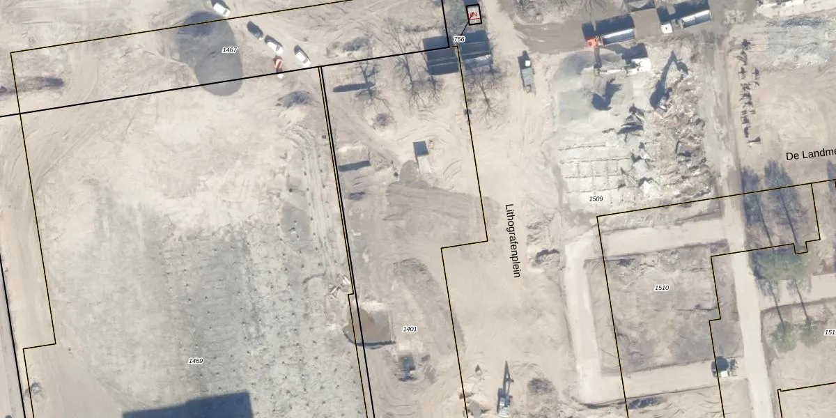 Het perceel waarop Lithografenplein 595 staat heeft een oppervlakte van 3792 m². Dit is een zeer groot perceel. De perceeloppervlakte wordt geregistreerd door het Kadaster. Gedetailleerde informatie over de maten van dit perceel kunt u vinden in het rapport Kadastrale kaart met maatvoering van Lithografenplein 595.