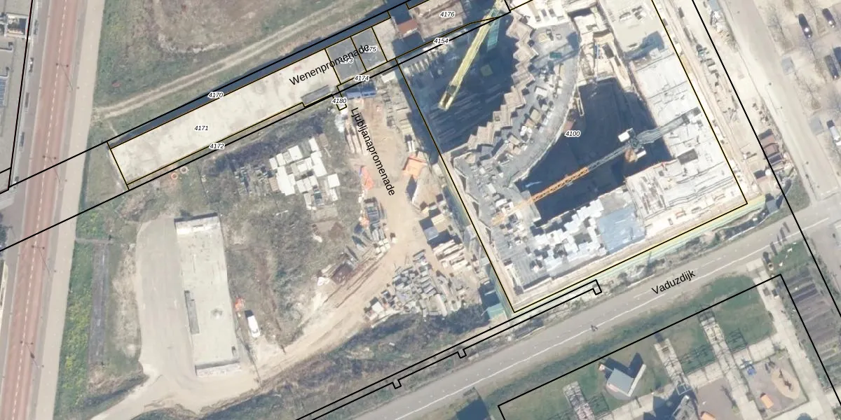 Het perceel waarop Ljubljanapromenade 94 staat heeft een oppervlakte van 32,9 ha. Dit is een zeer groot perceel. De perceeloppervlakte wordt geregistreerd door het Kadaster. Gedetailleerde informatie over de maten van dit perceel kunt u vinden in het rapport Kadastrale kaart met maatvoering van Ljubljanapromenade 94.