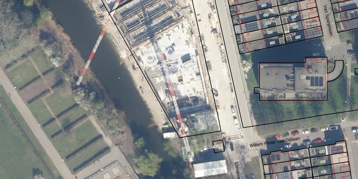Het adres ligt op het perceel UTT00-R-430, dat zich in de kadastrale gemeente Utrecht bevindt. De oppervlakte van het perceel is 3039 m². Dat is groter dan gemiddeld in Utrecht, waar de gemiddelde perceeloppervlakte op 1439,25 m² ligt. Het grootste perceel in de kadastrale gemeente is 90,1 ha. Het kleinste perceel heeft een oppervlakte van 0 m². Op het perceel liggen in totaal 215 adressen. In de Basisregistratie Kadaster (BRK) werden de grenzen van het perceel geregistreerd op 05-04-2023.