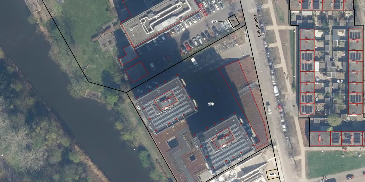 Het perceel waarop Lomanlaan 79-D staat heeft een oppervlakte van 4240 m². Dit is een zeer groot perceel. De perceeloppervlakte wordt geregistreerd door het Kadaster. Gedetailleerde informatie over de maten van dit perceel kunt u vinden in het rapport Kadastrale kaart met maatvoering van Lomanlaan 79-D.