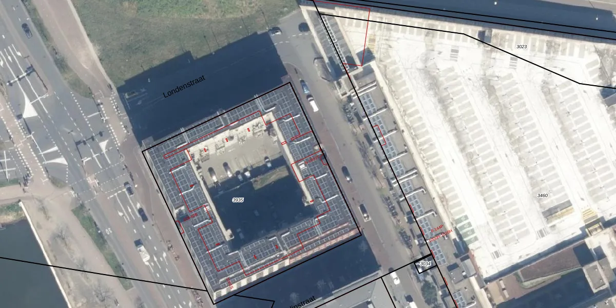 Het perceel waarop Londenstraat 39 staat heeft een oppervlakte van 2902 m². Dit is een zeer groot perceel. De perceeloppervlakte wordt geregistreerd door het Kadaster. Gedetailleerde informatie over de maten van dit perceel kunt u vinden in het rapport Kadastrale kaart met maatvoering van Londenstraat 39.
