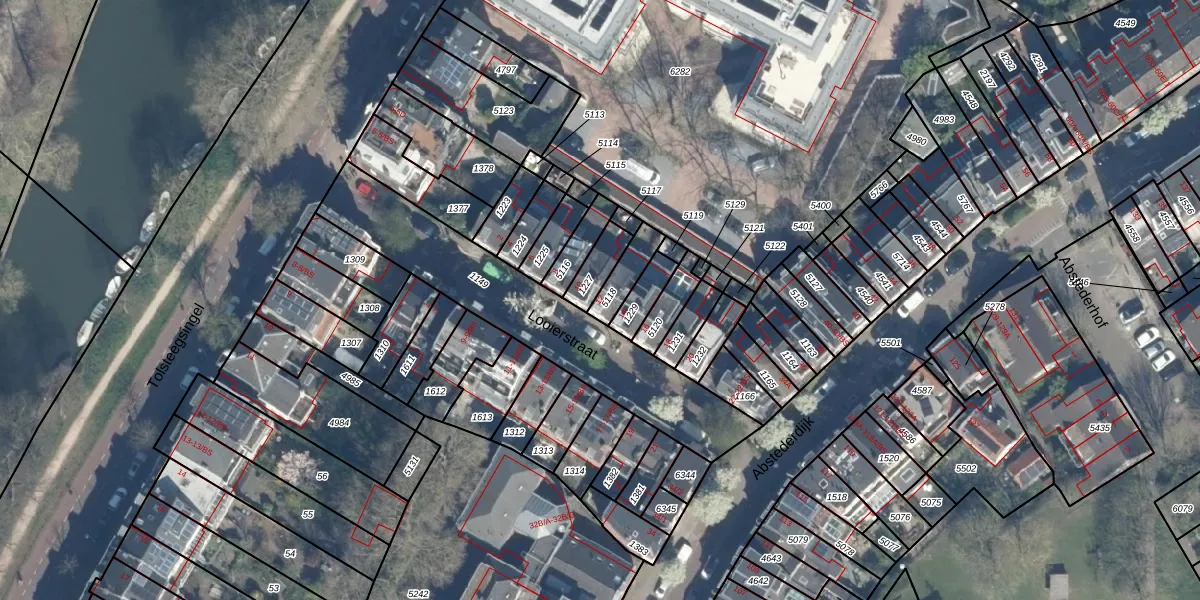 Looierstraat 12 is gelegen op kadastraal perceel ASD40D5118. Deze kadastrale aanduiding is uniek en wordt gebruikt door het Kadaster om eigendomsrechten en andere zakelijke rechten vast te leggen. Het perceel maakt onderdeel uit van de kadastrale gemeente Abstede.