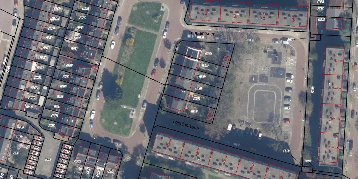 Het perceel waarop Looplantsoen 102 staat heeft een oppervlakte van 186 m². Dit is een middelgroot perceel. De perceeloppervlakte wordt geregistreerd door het Kadaster. Gedetailleerde informatie over de maten van dit perceel kunt u vinden in het rapport Kadastrale kaart met maatvoering van Looplantsoen 102.