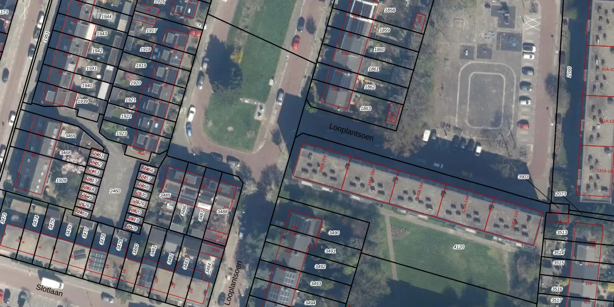 Het perceel waarop Looplantsoen 188-A staat heeft een oppervlakte van 2547 m². Dit is een zeer groot perceel. De perceeloppervlakte wordt geregistreerd door het Kadaster. Gedetailleerde informatie over de maten van dit perceel kunt u vinden in het rapport Kadastrale kaart met maatvoering van Looplantsoen 188-A.