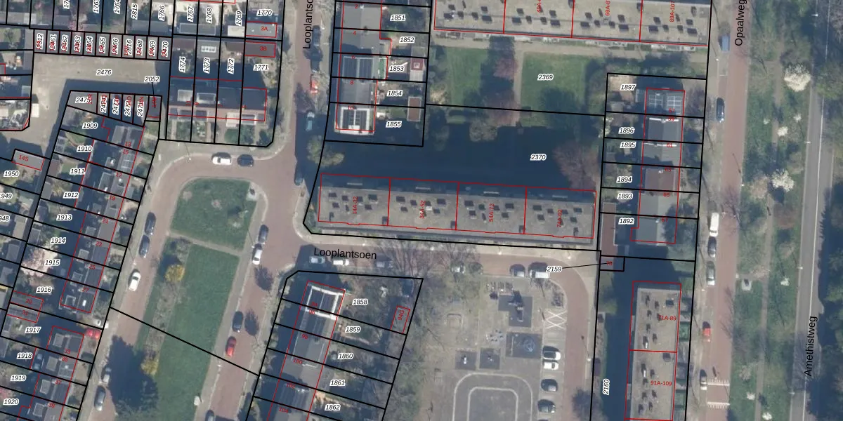 Looplantsoen 44 is gelegen op kadastraal perceel TSG00B2370. Deze kadastrale aanduiding is uniek en wordt gebruikt door het Kadaster om eigendomsrechten en andere zakelijke rechten vast te leggen. Het perceel maakt onderdeel uit van de kadastrale gemeente Tolsteeg.