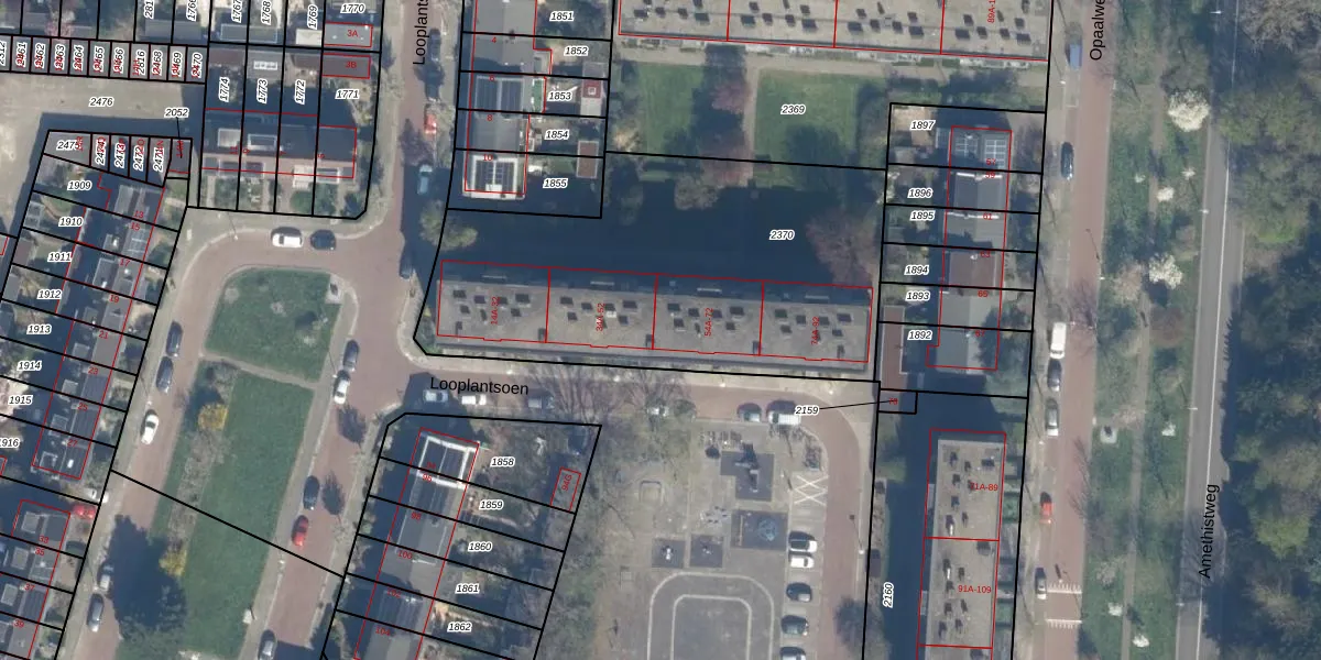 Looplantsoen 54-A is gelegen op kadastraal perceel TSG00B2370. Deze kadastrale aanduiding is uniek en wordt gebruikt door het Kadaster om eigendomsrechten en andere zakelijke rechten vast te leggen. Het perceel maakt onderdeel uit van de kadastrale gemeente Tolsteeg.