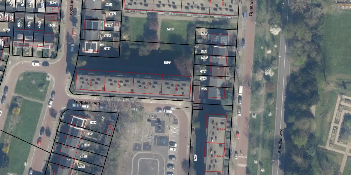 Looplantsoen 90 is gelegen op kadastraal perceel TSG00B2370. Deze kadastrale aanduiding is uniek en wordt gebruikt door het Kadaster om eigendomsrechten en andere zakelijke rechten vast te leggen. Het perceel maakt onderdeel uit van de kadastrale gemeente Tolsteeg.