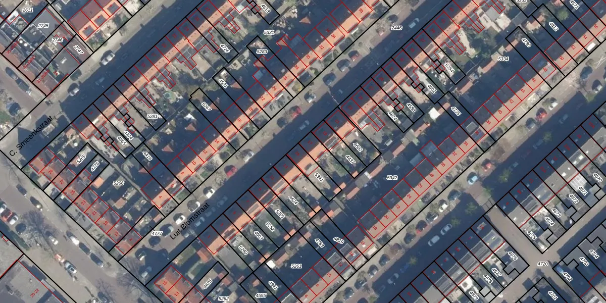 Luit Blomstraat 15 is gelegen op kadastraal perceel ZLN02B5341. Deze kadastrale aanduiding is uniek en wordt gebruikt door het Kadaster om eigendomsrechten en andere zakelijke rechten vast te leggen. Het perceel maakt onderdeel uit van de kadastrale gemeente Zuilen.