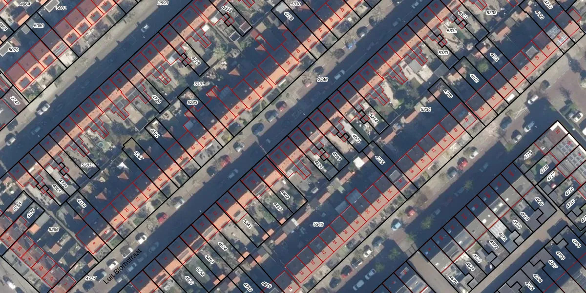 Luit Blomstraat 25 is gelegen op kadastraal perceel ZLN02B5342. Deze kadastrale aanduiding is uniek en wordt gebruikt door het Kadaster om eigendomsrechten en andere zakelijke rechten vast te leggen. Het perceel maakt onderdeel uit van de kadastrale gemeente Zuilen.