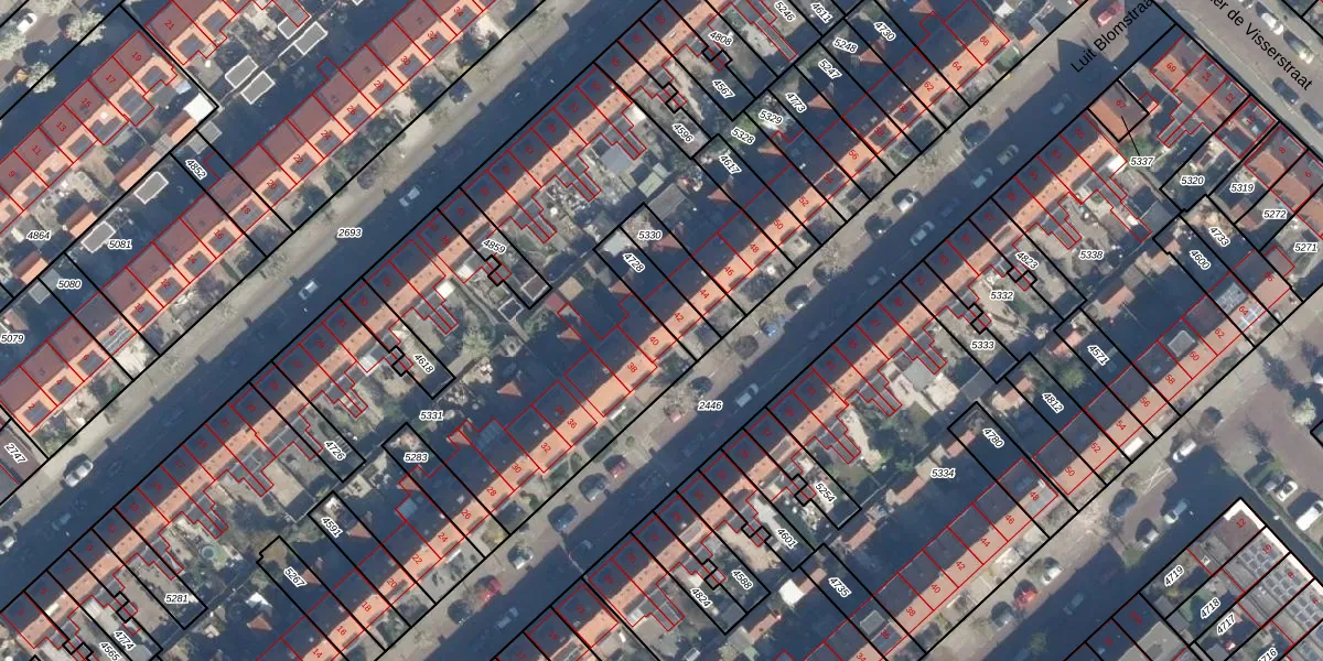 Luit Blomstraat 40 is gelegen op kadastraal perceel ZLN02B5331. Deze kadastrale aanduiding is uniek en wordt gebruikt door het Kadaster om eigendomsrechten en andere zakelijke rechten vast te leggen. Het perceel maakt onderdeel uit van de kadastrale gemeente Zuilen.