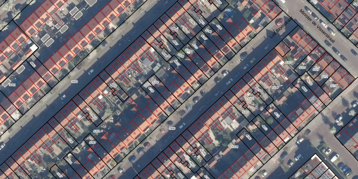 Luit Blomstraat 46 is gelegen op kadastraal perceel ZLN02B5331. Deze kadastrale aanduiding is uniek en wordt gebruikt door het Kadaster om eigendomsrechten en andere zakelijke rechten vast te leggen. Het perceel maakt onderdeel uit van de kadastrale gemeente Zuilen.