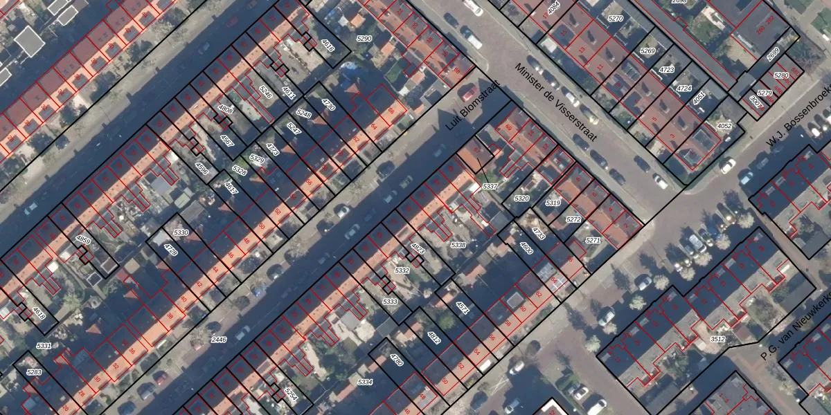 Luit Blomstraat 59 is gelegen op kadastraal perceel ZLN02B5338. Deze kadastrale aanduiding is uniek en wordt gebruikt door het Kadaster om eigendomsrechten en andere zakelijke rechten vast te leggen. Het perceel maakt onderdeel uit van de kadastrale gemeente Zuilen.
