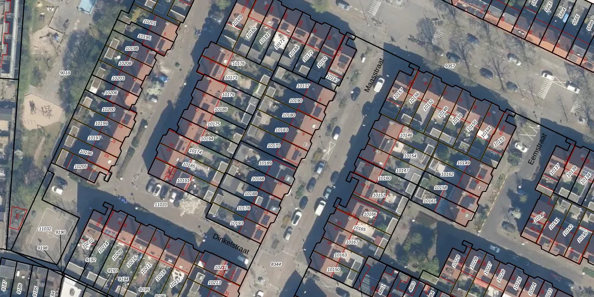 Gebruik de zoekbalk of klik op een perceel voor informatie over de adressen binnen dit perceel.