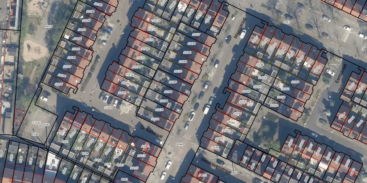 Gebruik de zoekbalk of klik op een perceel voor informatie over de adressen binnen dit perceel.