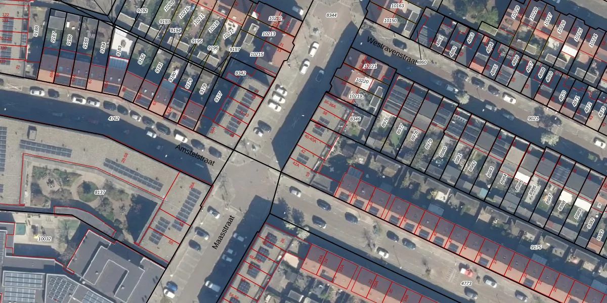 Het perceel waarop Maasstraat 42 staat heeft een oppervlakte van 2806 m². Dit is een zeer groot perceel. De perceeloppervlakte wordt geregistreerd door het Kadaster. Gedetailleerde informatie over de maten van dit perceel kunt u vinden in het rapport Kadastrale kaart met maatvoering van Maasstraat 42.