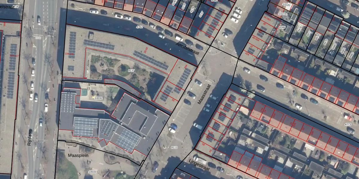 Maasstraat 53 is gelegen op kadastraal perceel CTR00D8137. Deze kadastrale aanduiding is uniek en wordt gebruikt door het Kadaster om eigendomsrechten en andere zakelijke rechten vast te leggen. Het perceel maakt onderdeel uit van de kadastrale gemeente Catharijne.