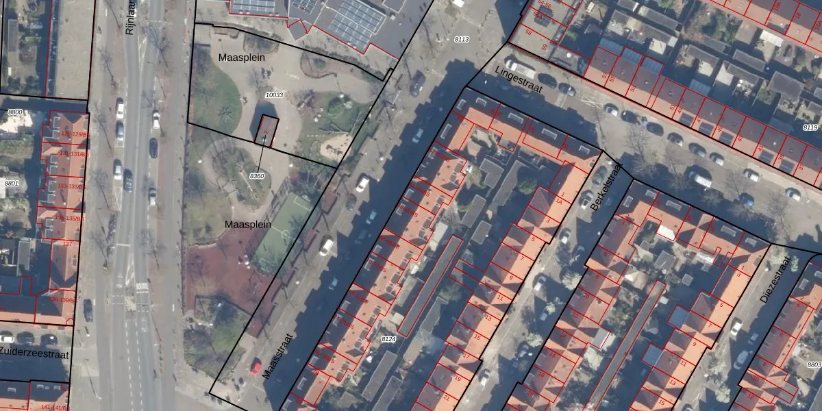 Het perceel waarop Maasstraat 66 staat heeft een oppervlakte van 3428 m². Dit is een zeer groot perceel. De perceeloppervlakte wordt geregistreerd door het Kadaster. Gedetailleerde informatie over de maten van dit perceel kunt u vinden in het rapport Kadastrale kaart met maatvoering van Maasstraat 66.