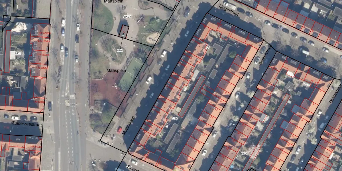 Het perceel waarop Maasstraat 70 staat heeft een oppervlakte van 3428 m². Dit is een zeer groot perceel. De perceeloppervlakte wordt geregistreerd door het Kadaster. Gedetailleerde informatie over de maten van dit perceel kunt u vinden in het rapport Kadastrale kaart met maatvoering van Maasstraat 70.