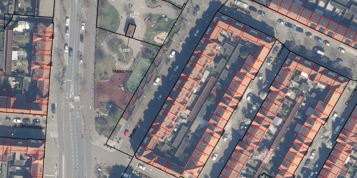 Het perceel waarop Maasstraat 70-BS staat heeft een oppervlakte van 3428 m². Dit is een zeer groot perceel. De perceeloppervlakte wordt geregistreerd door het Kadaster. Gedetailleerde informatie over de maten van dit perceel kunt u vinden in het rapport Kadastrale kaart met maatvoering van Maasstraat 70-BS.