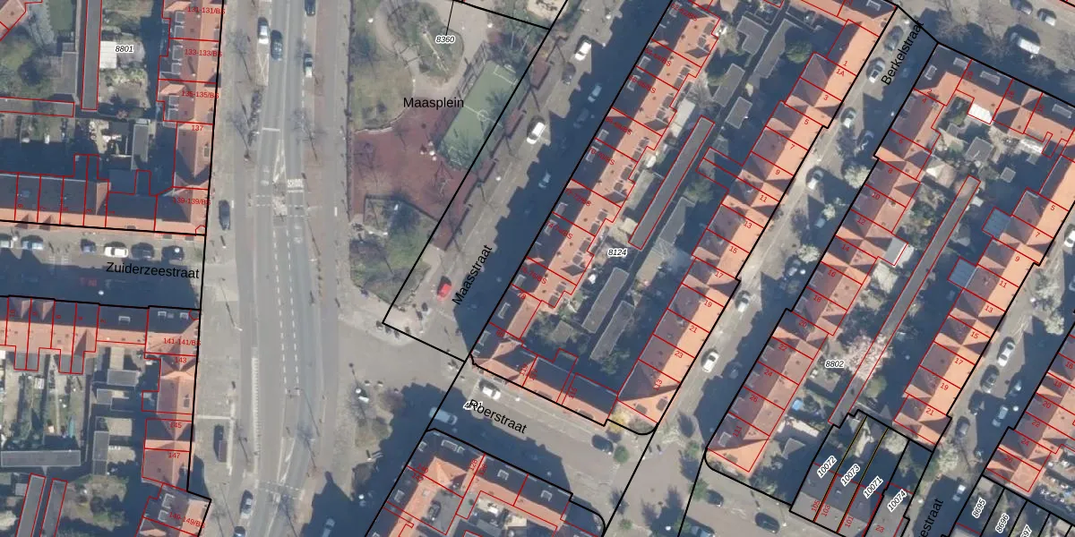Het perceel waarop Maasstraat 76 staat heeft een oppervlakte van 3428 m². Dit is een zeer groot perceel. De perceeloppervlakte wordt geregistreerd door het Kadaster. Gedetailleerde informatie over de maten van dit perceel kunt u vinden in het rapport Kadastrale kaart met maatvoering van Maasstraat 76.