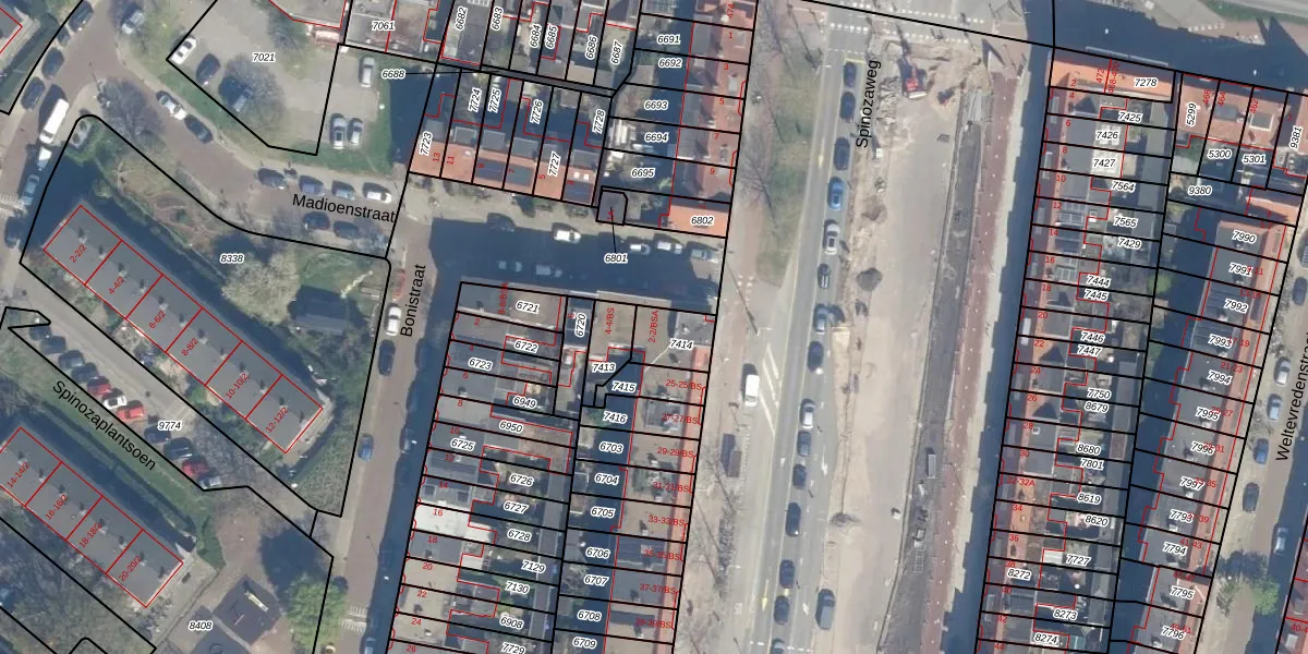Madioenstraat 2-BS is gelegen op kadastraal perceel CTR00B7414. Deze kadastrale aanduiding is uniek en wordt gebruikt door het Kadaster om eigendomsrechten en andere zakelijke rechten vast te leggen. Het perceel maakt onderdeel uit van de kadastrale gemeente Catharijne.