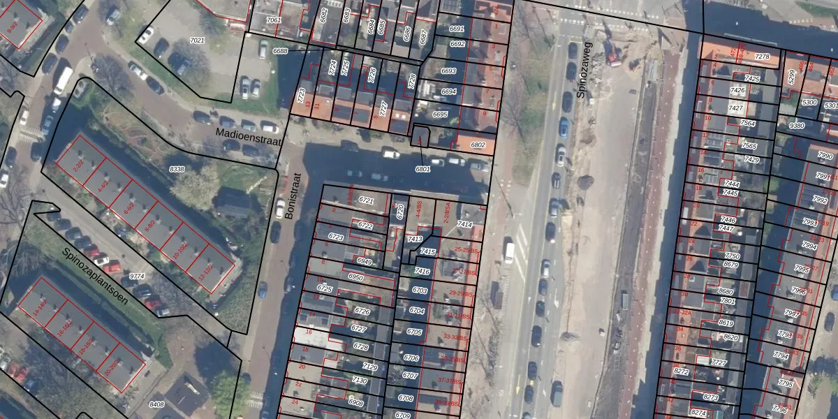 Het perceel waarop Madioenstraat 4-BS staat heeft een oppervlakte van 80 m². Dit is een klein perceel. De perceeloppervlakte wordt geregistreerd door het Kadaster. Gedetailleerde informatie over de maten van dit perceel kunt u vinden in het rapport Kadastrale kaart met maatvoering van Madioenstraat 4-BS.