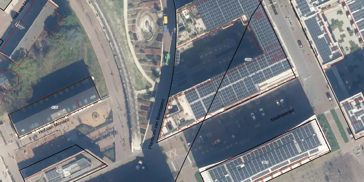 Het perceel waarop Madridstraat 11 staat heeft een oppervlakte van 4135 m². Dit is een zeer groot perceel. De perceeloppervlakte wordt geregistreerd door het Kadaster. Gedetailleerde informatie over de maten van dit perceel kunt u vinden in het rapport Kadastrale kaart met maatvoering van Madridstraat 11.