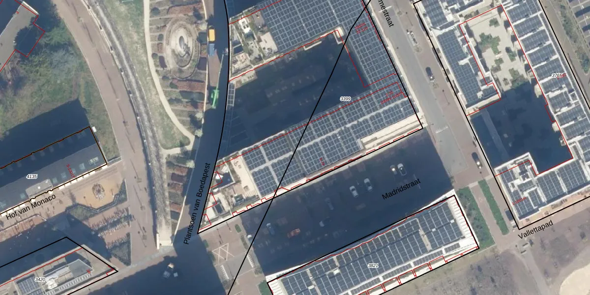Het perceel waarop Madridstraat 53 staat heeft een oppervlakte van 4135 m². Dit is een zeer groot perceel. De perceeloppervlakte wordt geregistreerd door het Kadaster. Gedetailleerde informatie over de maten van dit perceel kunt u vinden in het rapport Kadastrale kaart met maatvoering van Madridstraat 53.