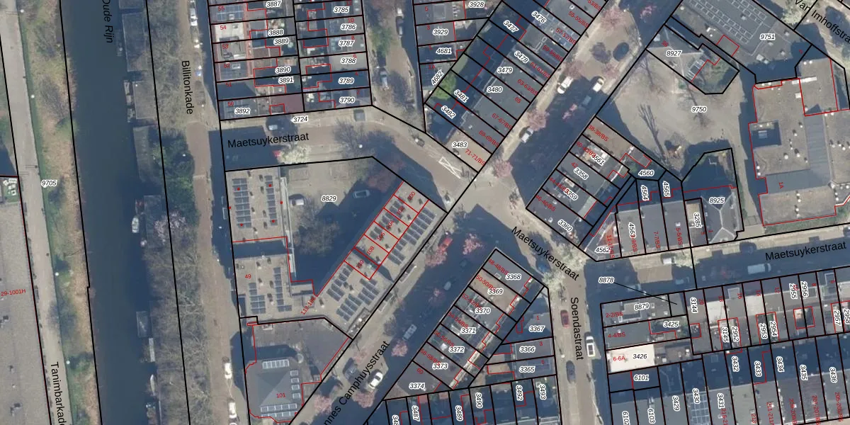 Maetsuykerstraat 112 is gelegen op kadastraal perceel CTR00C8829. Deze kadastrale aanduiding is uniek en wordt gebruikt door het Kadaster om eigendomsrechten en andere zakelijke rechten vast te leggen. Het perceel maakt onderdeel uit van de kadastrale gemeente Catharijne.