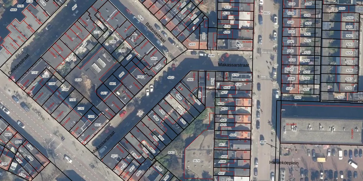 Het perceel waarop Makassarstraat 8-A staat heeft een oppervlakte van 88 m². Dit is een klein perceel. De perceeloppervlakte wordt geregistreerd door het Kadaster. Gedetailleerde informatie over de maten van dit perceel kunt u vinden in het rapport Kadastrale kaart met maatvoering van Makassarstraat 8-A.