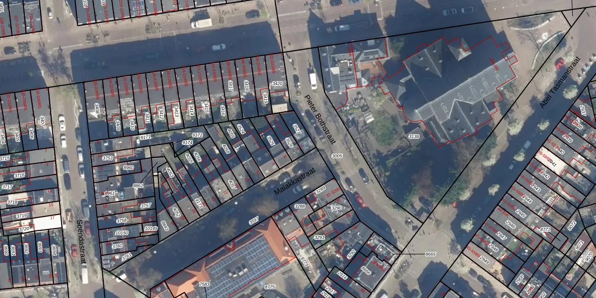 Het perceel waarop Malakkastraat 3 staat heeft een oppervlakte van 80 m². Dit is een klein perceel. De perceeloppervlakte wordt geregistreerd door het Kadaster. Gedetailleerde informatie over de maten van dit perceel kunt u vinden in het rapport Kadastrale kaart met maatvoering van Malakkastraat 3.
