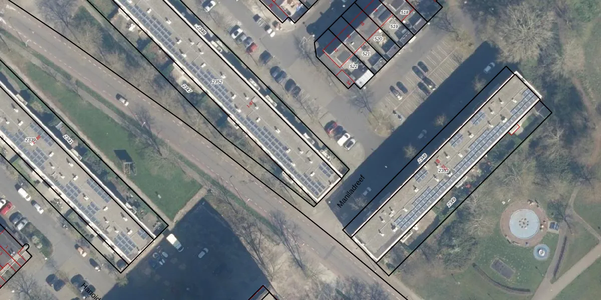Het perceel waarop Maniladreef 79 staat heeft een oppervlakte van 1220 m². Dit is een zeer groot perceel. De perceeloppervlakte wordt geregistreerd door het Kadaster. Gedetailleerde informatie over de maten van dit perceel kunt u vinden in het rapport Kadastrale kaart met maatvoering van Maniladreef 79.