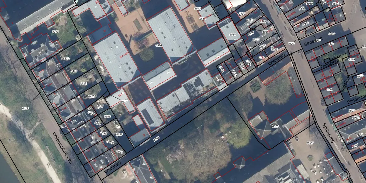 Het perceel waarop Mariaplaats 32-B staat heeft een oppervlakte van 5368 m². Dit is een zeer groot perceel. De perceeloppervlakte wordt geregistreerd door het Kadaster. Gedetailleerde informatie over de maten van dit perceel kunt u vinden in het rapport Kadastrale kaart met maatvoering van Mariaplaats 32-B.
