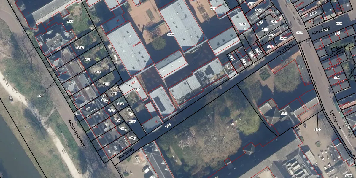 Het perceel waarop Mariaplaats 32 staat heeft een oppervlakte van 5368 m². Dit is een zeer groot perceel. De perceeloppervlakte wordt geregistreerd door het Kadaster. Gedetailleerde informatie over de maten van dit perceel kunt u vinden in het rapport Kadastrale kaart met maatvoering van Mariaplaats 32.