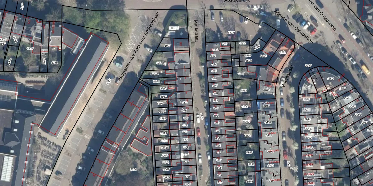 Markstraat 9 is gelegen op kadastraal perceel ASD40D5967. Deze kadastrale aanduiding is uniek en wordt gebruikt door het Kadaster om eigendomsrechten en andere zakelijke rechten vast te leggen. Het perceel maakt onderdeel uit van de kadastrale gemeente Abstede.