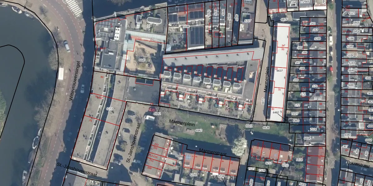 Het perceel waarop Marmerplein 22 staat heeft een oppervlakte van 3148 m². Dit is een zeer groot perceel. De perceeloppervlakte wordt geregistreerd door het Kadaster. Gedetailleerde informatie over de maten van dit perceel kunt u vinden in het rapport Kadastrale kaart met maatvoering van Marmerplein 22.