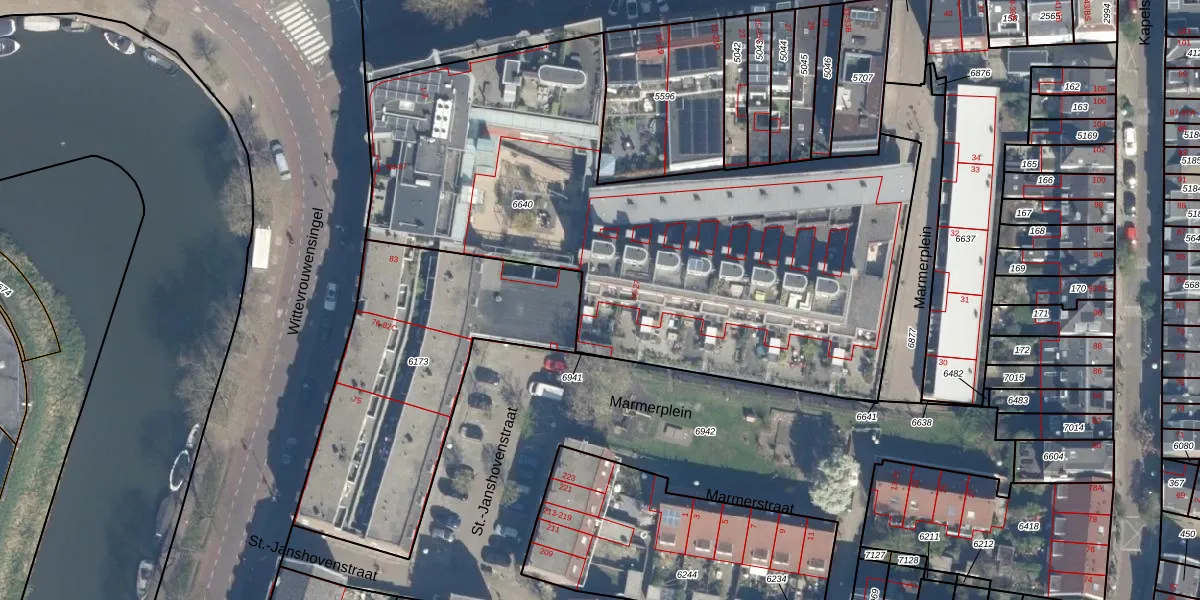 Het perceel waarop Marmerplein 26 staat heeft een oppervlakte van 3148 m². Dit is een zeer groot perceel. De perceeloppervlakte wordt geregistreerd door het Kadaster. Gedetailleerde informatie over de maten van dit perceel kunt u vinden in het rapport Kadastrale kaart met maatvoering van Marmerplein 26.