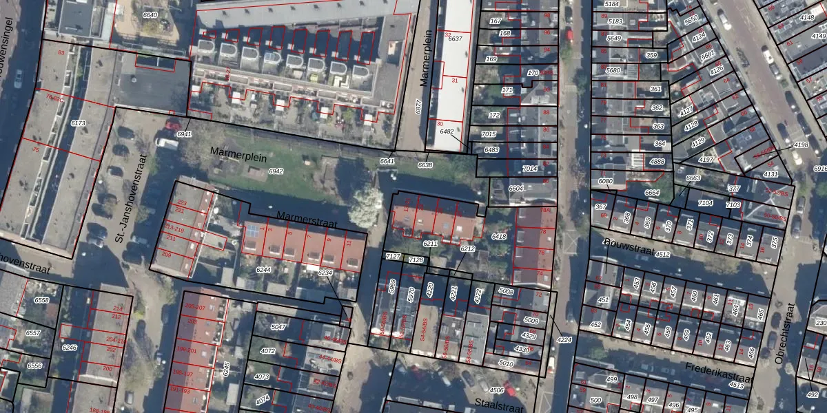 Marmerstraat 21 is gelegen op kadastraal perceel ASD40B6418. Deze kadastrale aanduiding is uniek en wordt gebruikt door het Kadaster om eigendomsrechten en andere zakelijke rechten vast te leggen. Het perceel maakt onderdeel uit van de kadastrale gemeente Abstede.