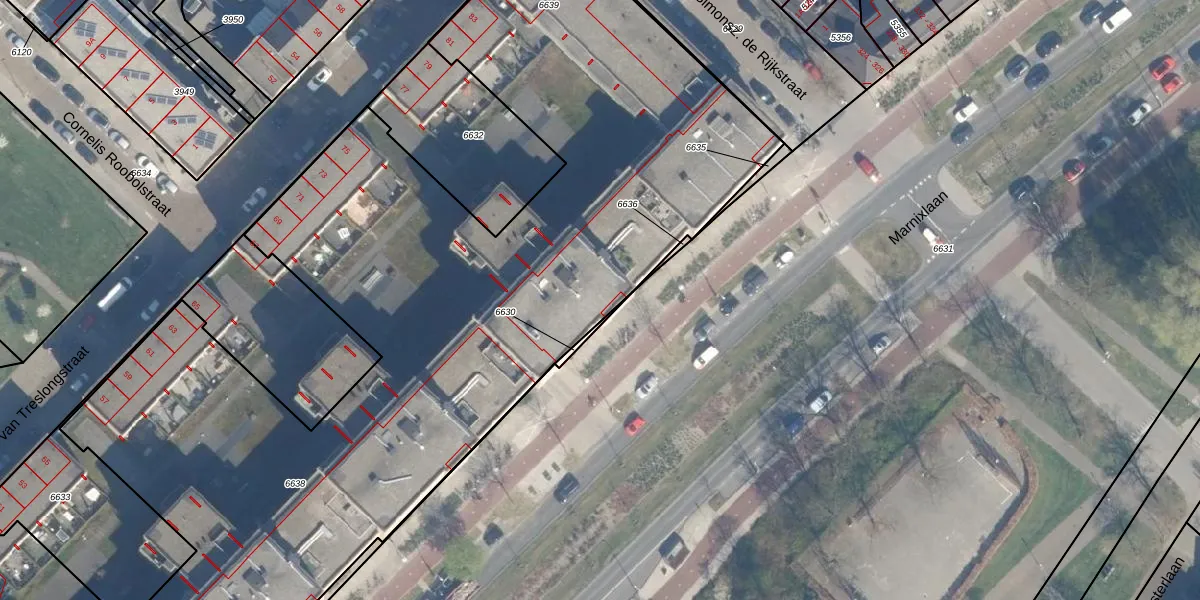 Het perceel waarop Marnixlaan 274-D staat heeft een oppervlakte van 6632 m². Dit is een zeer groot perceel. De perceeloppervlakte wordt geregistreerd door het Kadaster. Gedetailleerde informatie over de maten van dit perceel kunt u vinden in het rapport Kadastrale kaart met maatvoering van Marnixlaan 274-D.