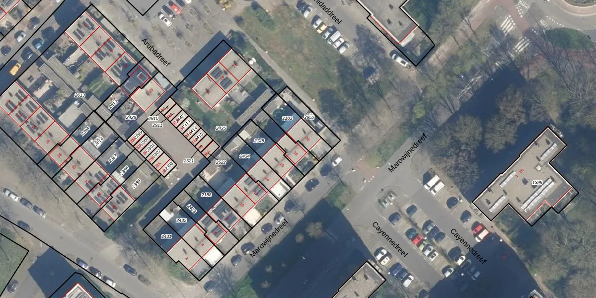 Het perceel waarop Marowijnedreef 18 staat heeft een oppervlakte van 1121 m². Dit is een zeer groot perceel. De perceeloppervlakte wordt geregistreerd door het Kadaster. Gedetailleerde informatie over de maten van dit perceel kunt u vinden in het rapport Kadastrale kaart met maatvoering van Marowijnedreef 18.